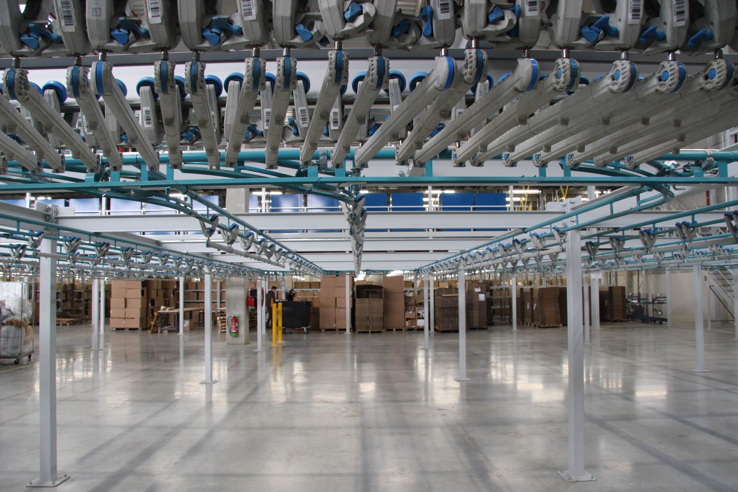 Opérant pour des grandes marques issues du milieu de la mode et du luxe, C-LOG réceptionne des pièces conditionnées en carton mais également sur cintres. Cela nécessite une plateforme intégrant du stockage à plat et suspendu.